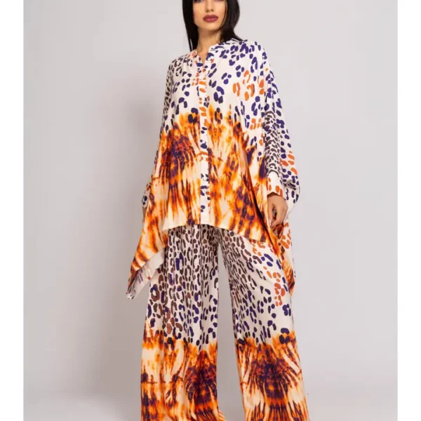 Εντυπωσιακό σετ από 100% βισκόζη με oversized πουκάμισο και παντελόνι σε χαλαρή γραμμή, με ζωηρό leopard print. Άνετο, αέρινο και ιδανικό για ξεχωριστές καλοκαιρινές εμφανίσεις.