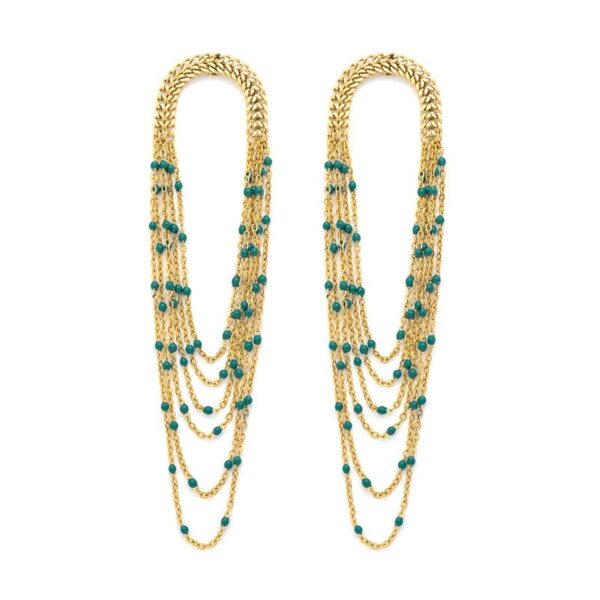 Σκουλαρίκια σε μορφή λεπτής αλυσίδας, εμπνευσμένα από βραχιόλι, διακοσμημένα με πολύχρωμες σμάλτινες χάντρες.