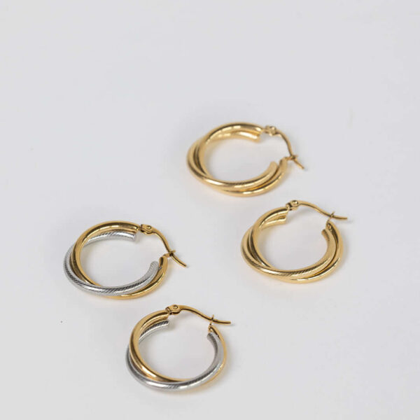 Δίχρωμοι minimal κρίκοι της Folie à Trois σε ασημί και χρυσό τόνο, από ανοξείδωτο ατσάλι με στριφτό σχεδιασμό. Ιδανικοί για καθημερινό styling.