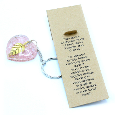 Μπρελόκ οργονίτη με Ροζ Χαλαζία & Χρυσό Φύλλο – φέρνει αγάπη, θετική ενέργεια και ζεν ισορροπία, με μοναδικό boho ύφος, χειροποίητο στην Ινδία.