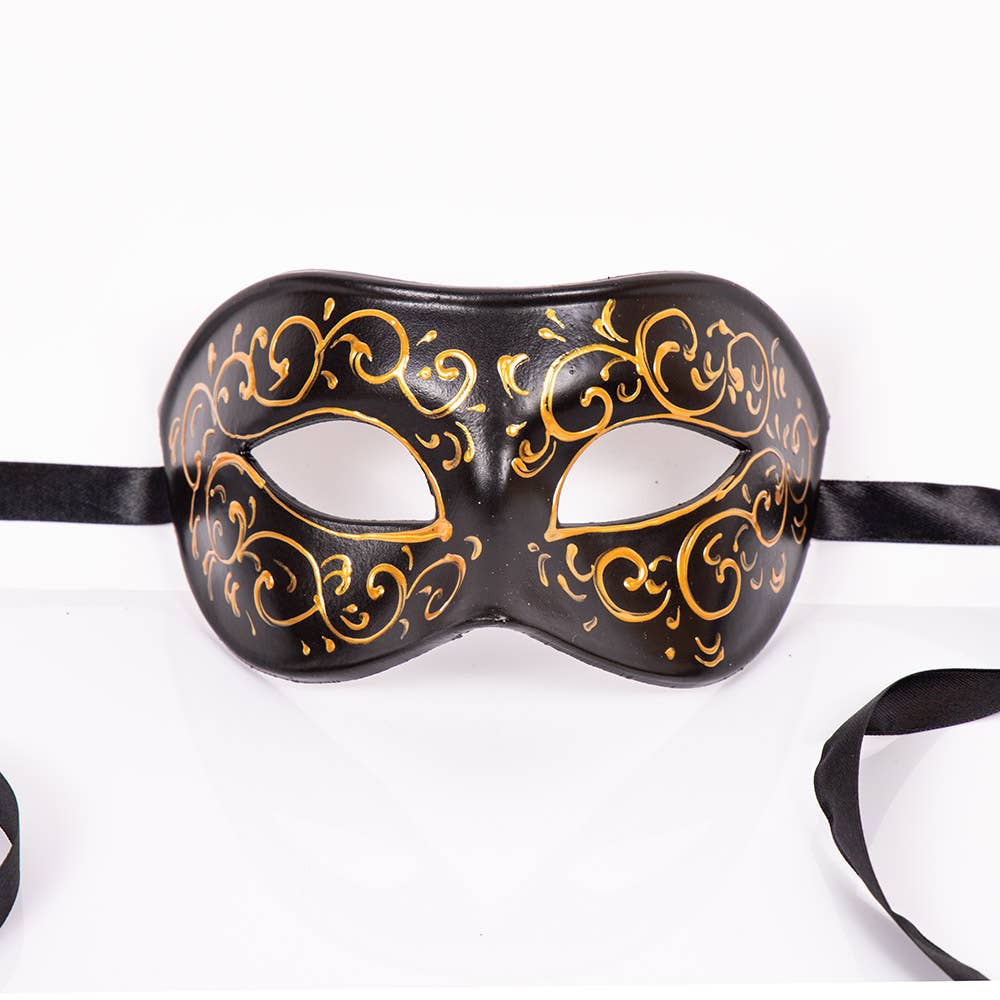 Η Mida Dorata είναι μια αυθεντική βενετσιάνικη μάσκα, σχεδιασμένη και κατασκευασμένη εξ ολοκλήρου στην Ιταλία. Με καθαρές γραμμές και μαύρη βάση, διακοσμημένη στο χέρι με χρυσές λεπτομέρειες, αποπνέει ηρεμία, αυτοκυριαρχία και εσωτερική δύναμη.