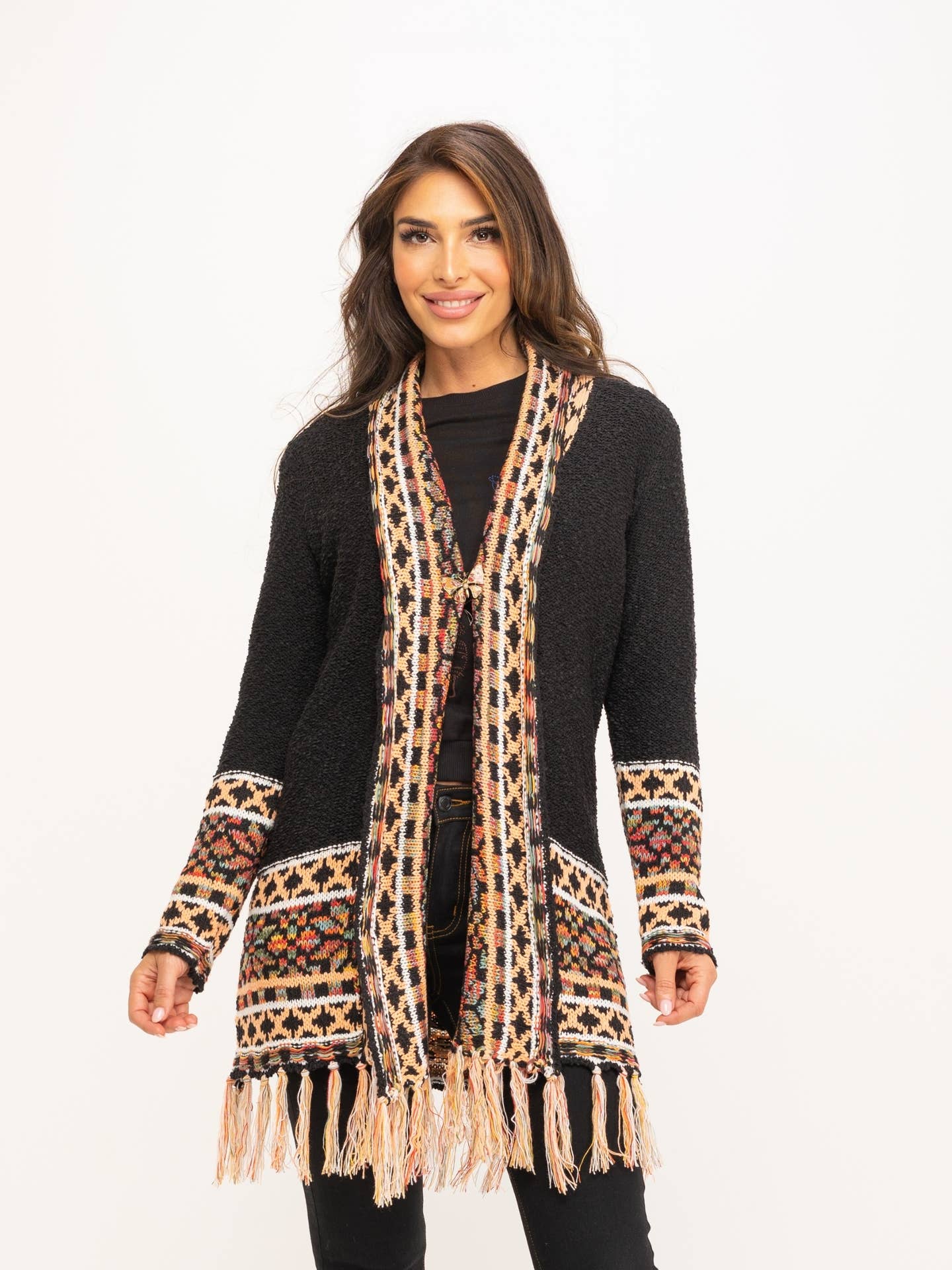 Απαλή και stylish jacquard ζακέτα με κρόσσια – τέλεια για cozy boho look από την Peace and Love.