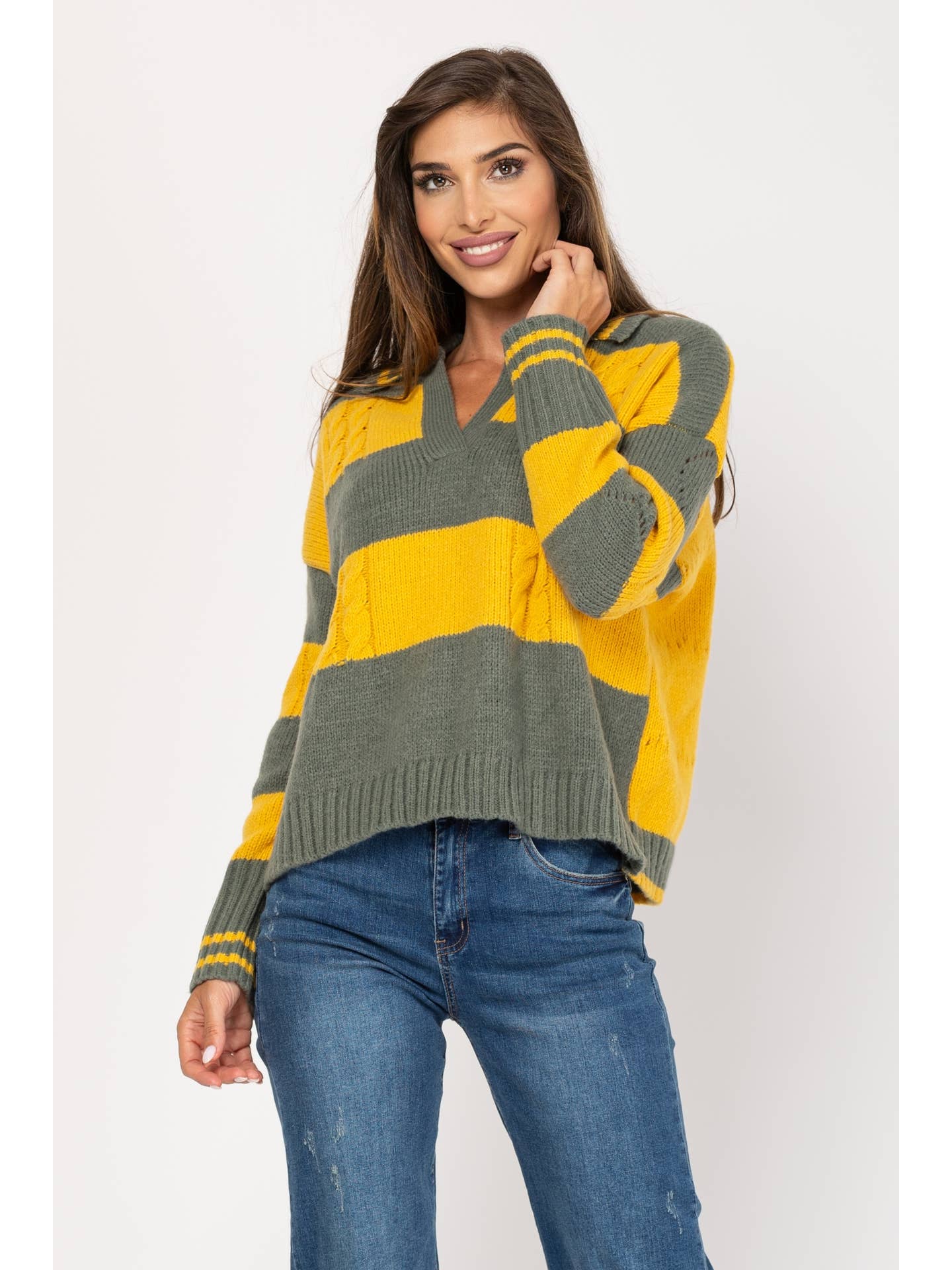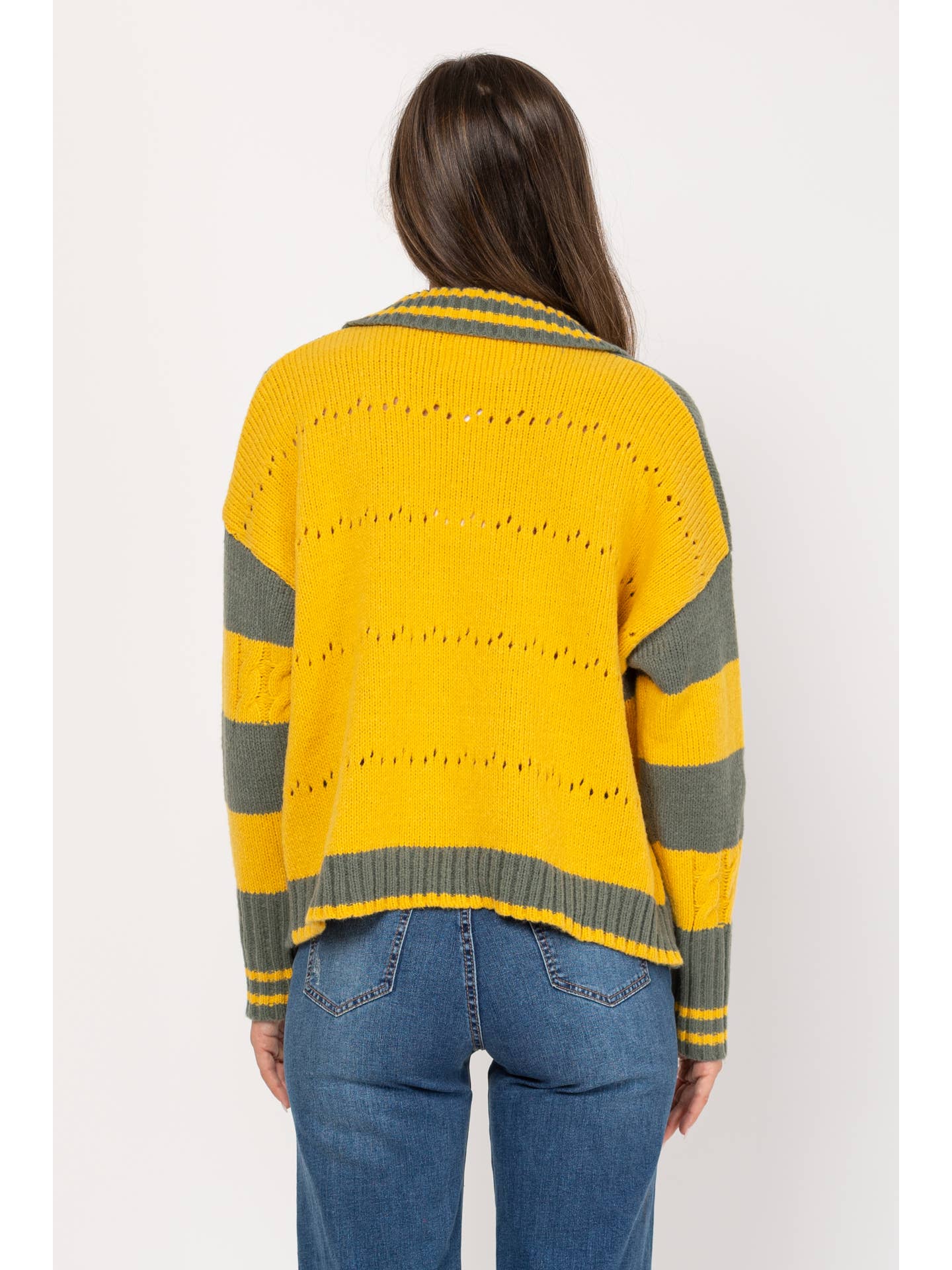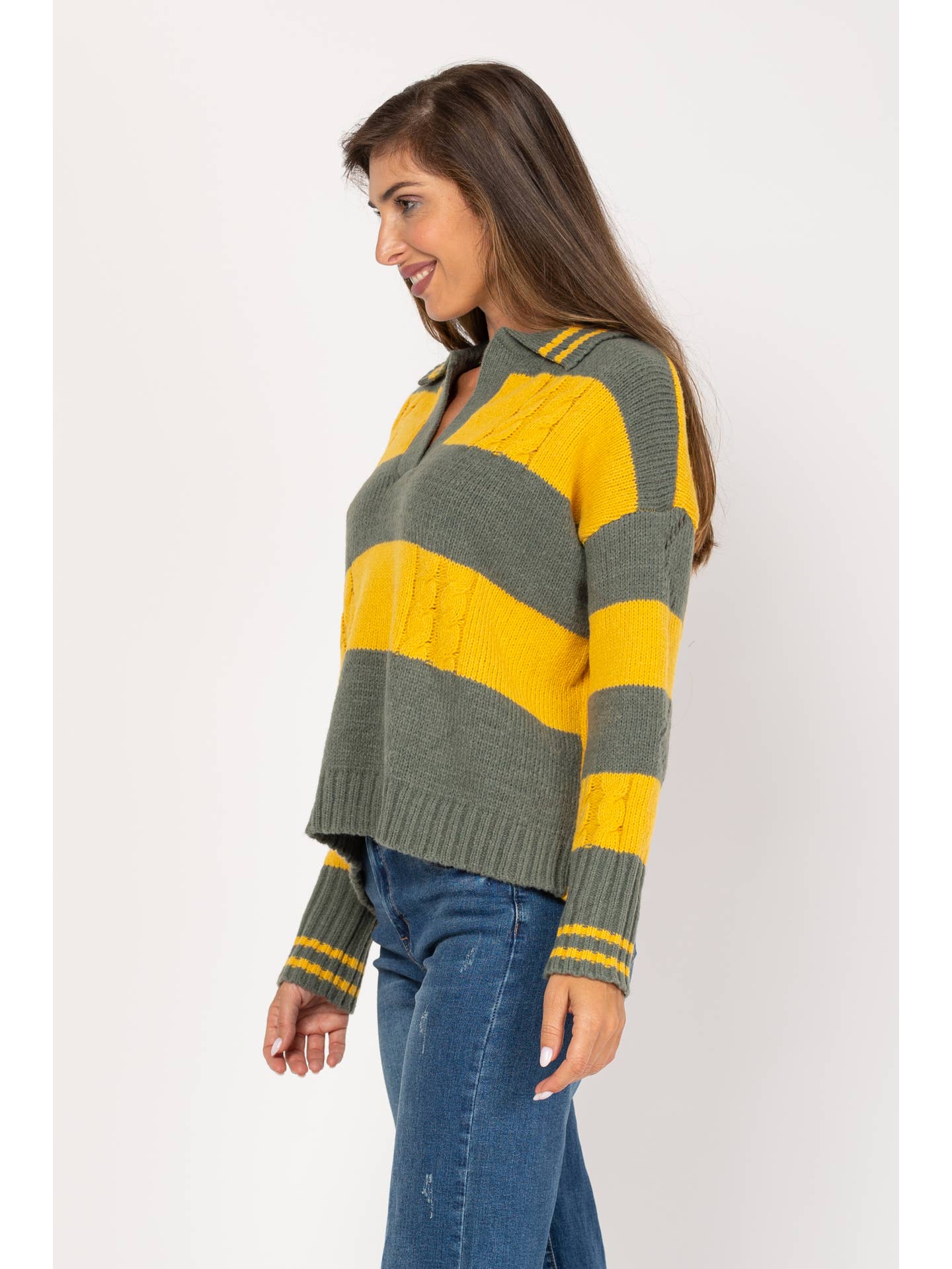 Ριγέ πλεκτό ζιβάγκο με γιακά πουκαμίσου Medium