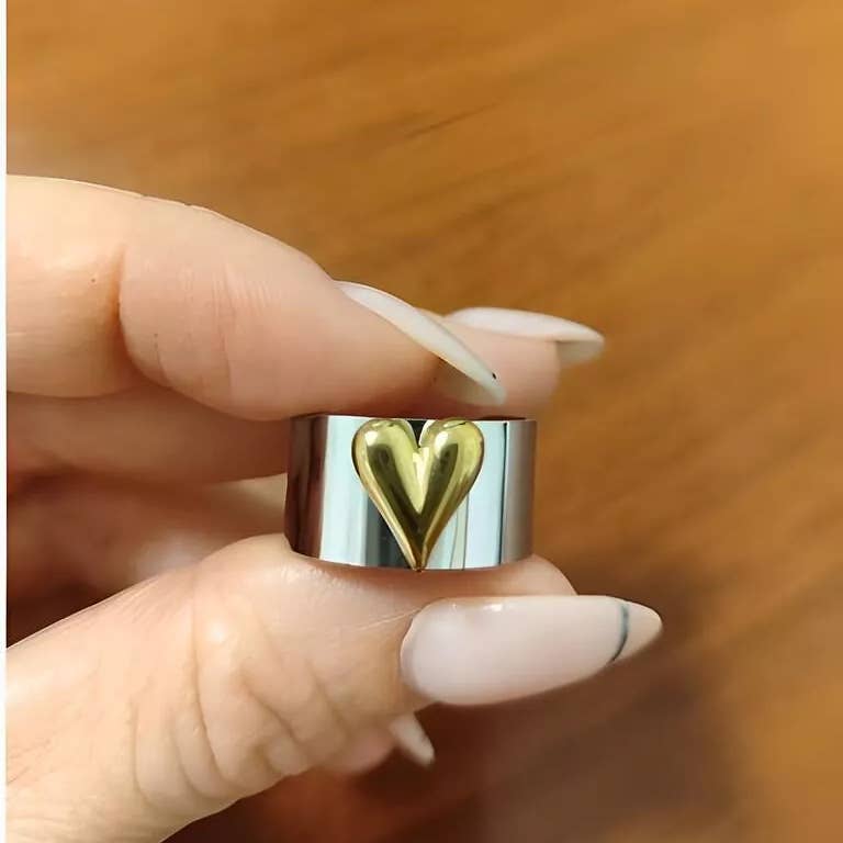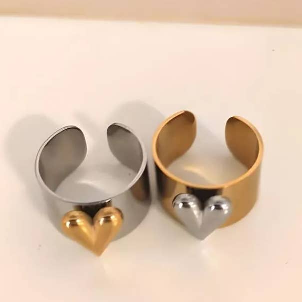 Ρυθμιζόμενο δαχτυλίδι από ανοξείδωτο ατσάλι με καρδιά επιχρυσωμένη 18K πάνω σε ασημί βάση. Minimal, ρομαντικό και ιδανικό για καθημερινό στυλ.