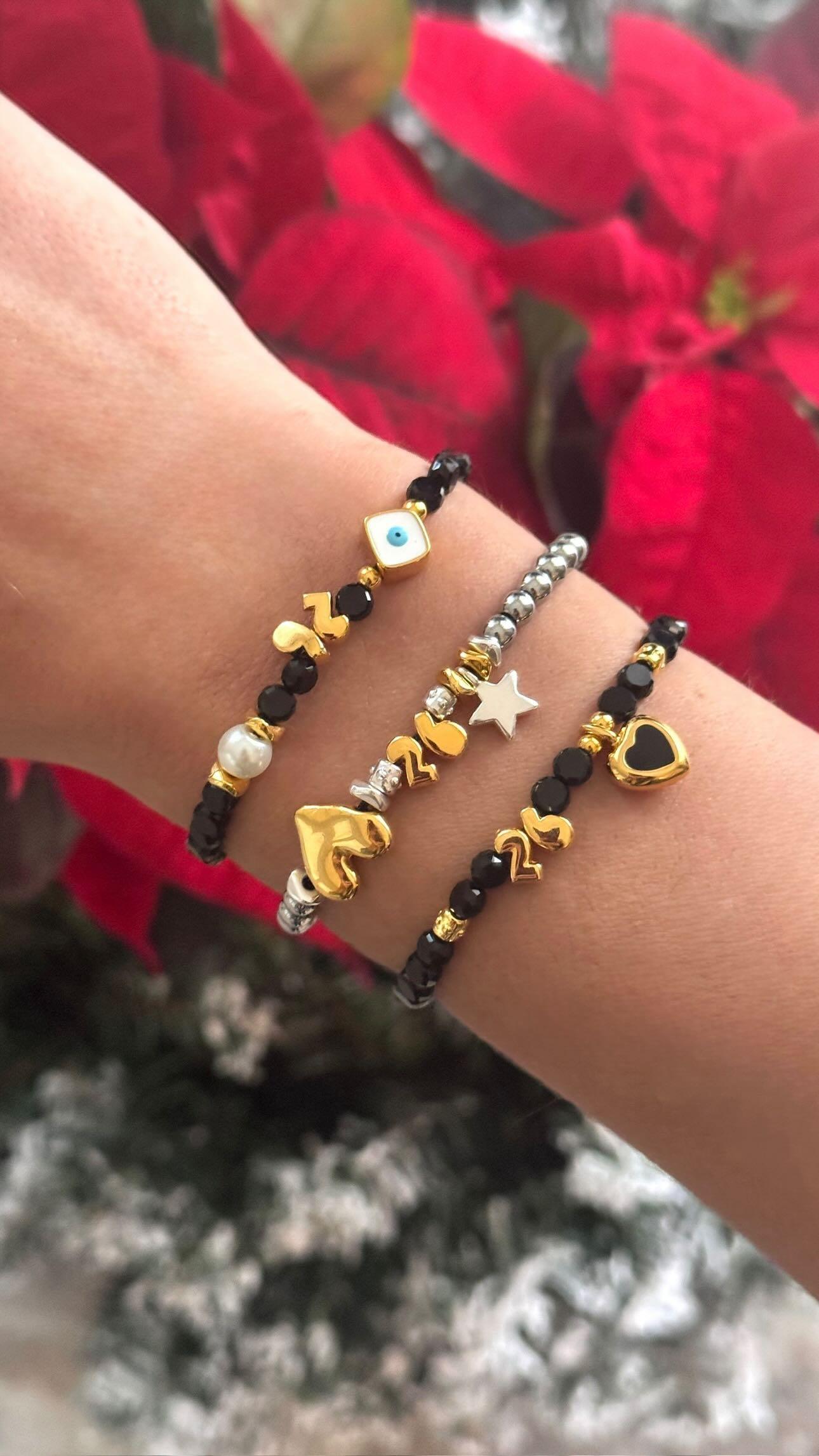 Χειροποίητο γούρι Βραχιόλι με επίχρυσα στοιχεία και κρύσταλλα.