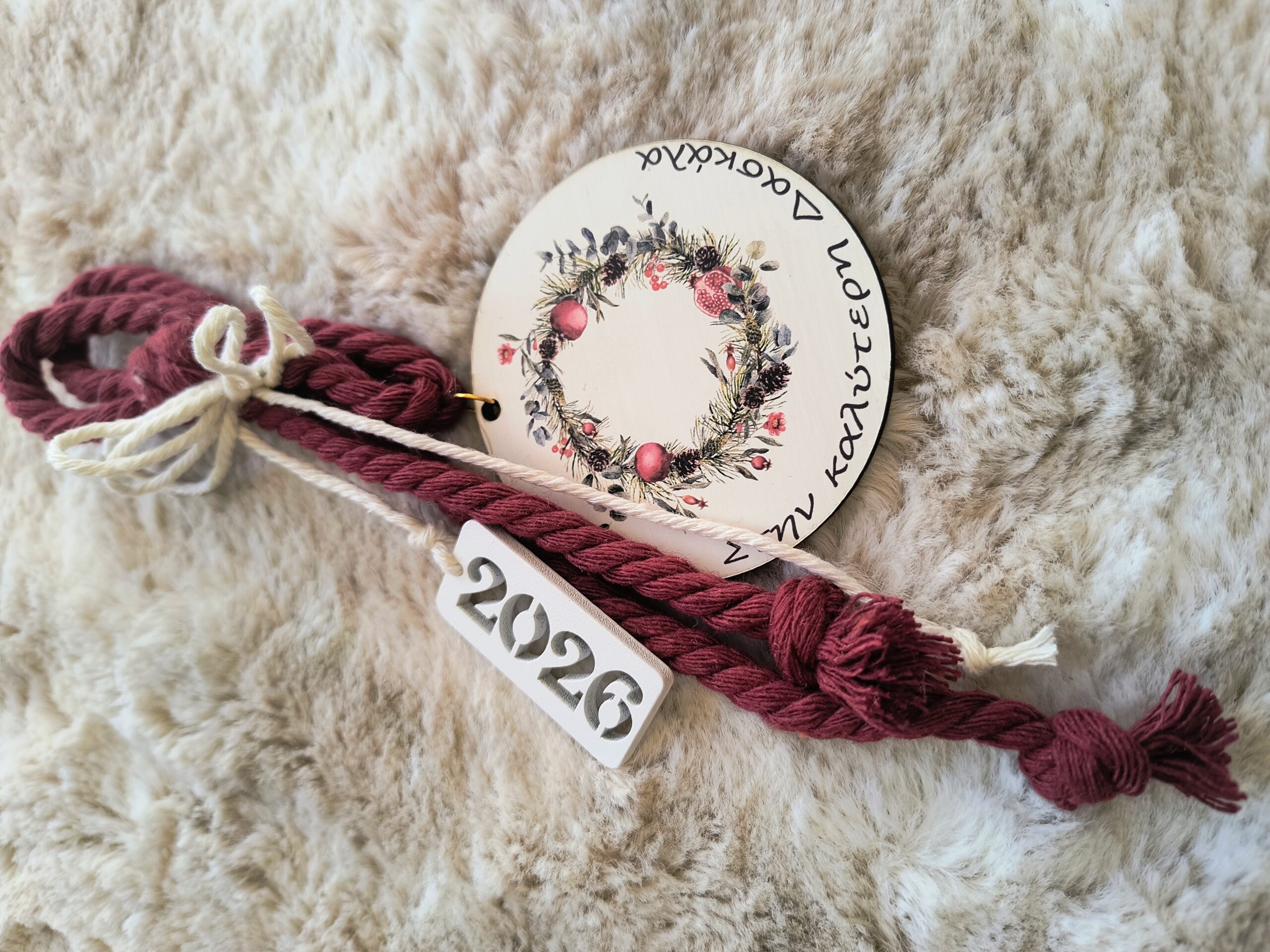 Χειροποίητο γούρι ξύλινο δασκάλα 2026