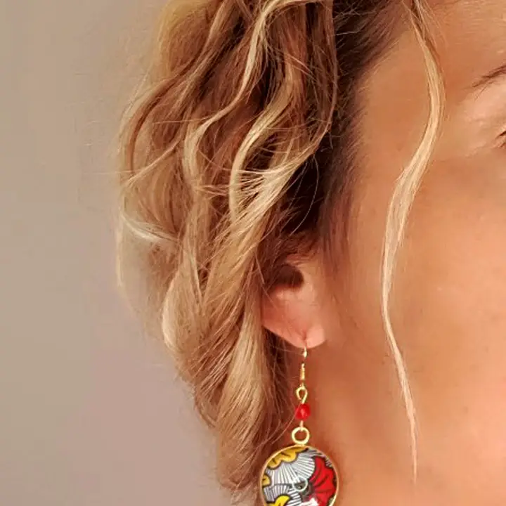 Ethnic Σκουλαρίκια με African Wax Μοτίβο – Χειροποίητα Statement Σκουλαρίκια σε Κόκκινο & Χρυσό