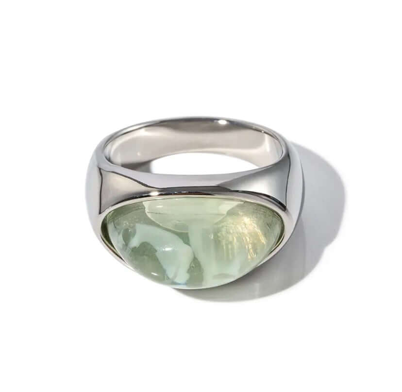 Αναδείξτε τη ζωντάνια σας με το Lumi Ring – ένα παιχνιδιάρικο δαχτυλίδι με χακί πέτρα, που φέρνει χρώμα και προσωπικότητα σε κάθε εμφάνιση.