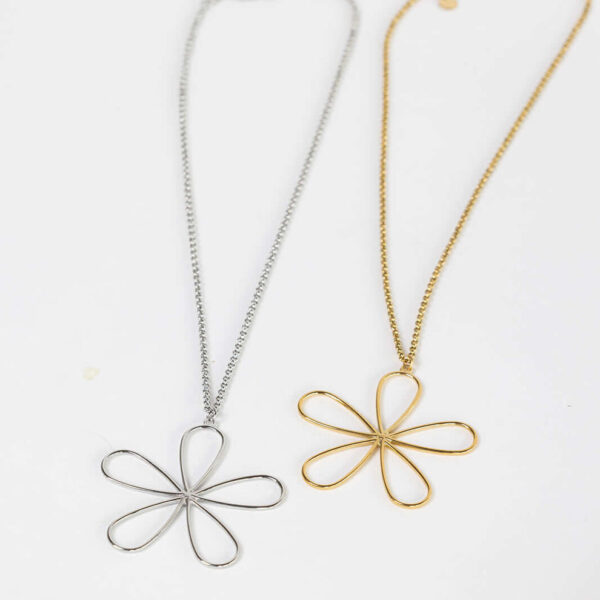 Το Azura Necklace είναι ένα ανοξείδωτο κολιέ με λουλουδένιο μενταγιόν σε δύο μεγέθη. Παιχνιδιάρικο, κομψό και ιδανικό για κάθε περίσταση.